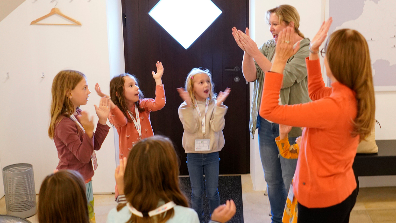 - Der Verein begrüßt die Kinder, stellt sich und seine Arbeit kurz vor, dabei können die Kinder schon miteinbezogen werden und ihre Wahrnehmung des Vereins erzählen. Dabei könnte man als Rederegel beispielsweise schon ein Maskottchen des Vereins, ein Teil eines Instruments oder einen Dirigierstab umherreichen.